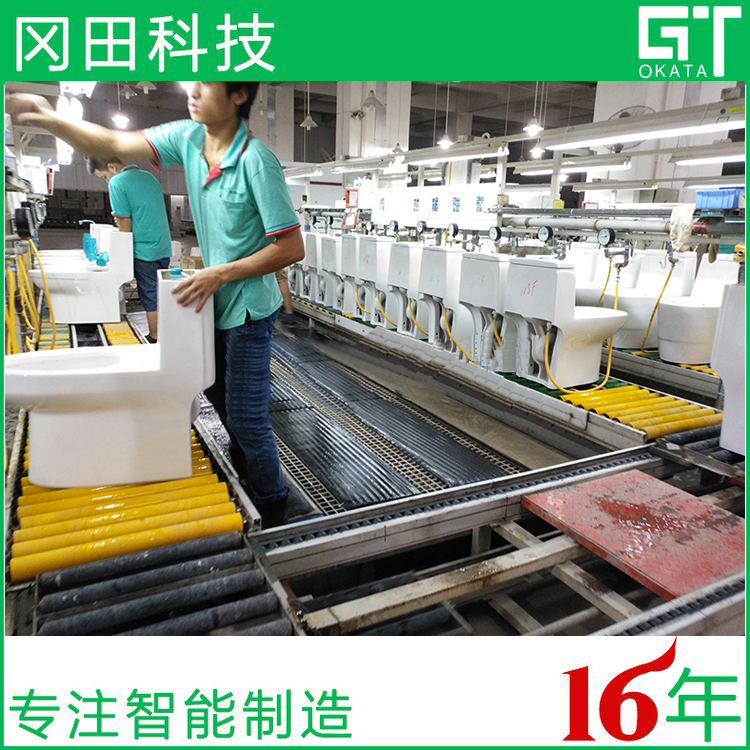因為連體馬桶比較重,適合選擇做自動組裝線輸送,必須要做單層工裝板或許上下層旋轉工裝板。其線體用高強度鋁型材制作,