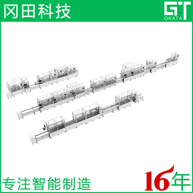 包括磁芯自動(dòng)上料,點(diǎn)A、B膠,磁芯扣合,電感測試,自動(dòng)浸錫,