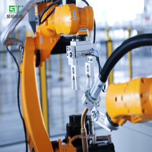 3、壓縮機(jī)自動(dòng)化組裝。冰箱發(fā)泡后豎身45度、由機(jī)械手固定安裝壓縮機(jī)的工裝設(shè)備,目前已投入實(shí)際應(yīng)用。機(jī)器人識(shí)別、搬取、固定壓縮機(jī)的裝備技術(shù),改變了原先操作工身兼搬運(yùn)工、甚至焊接工的情況,明顯降低了現(xiàn)場工人的勞動(dòng)強(qiáng)度,成為冰箱生產(chǎn)自動(dòng)化的重要環(huán)節(jié)之一。