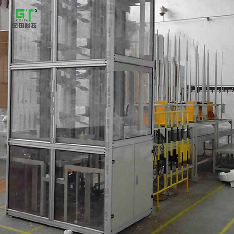升機的占地面積小的特點;相比較連續(xù)式垂直提升機來說提升速度更快,提升量可達25件/分鐘,
