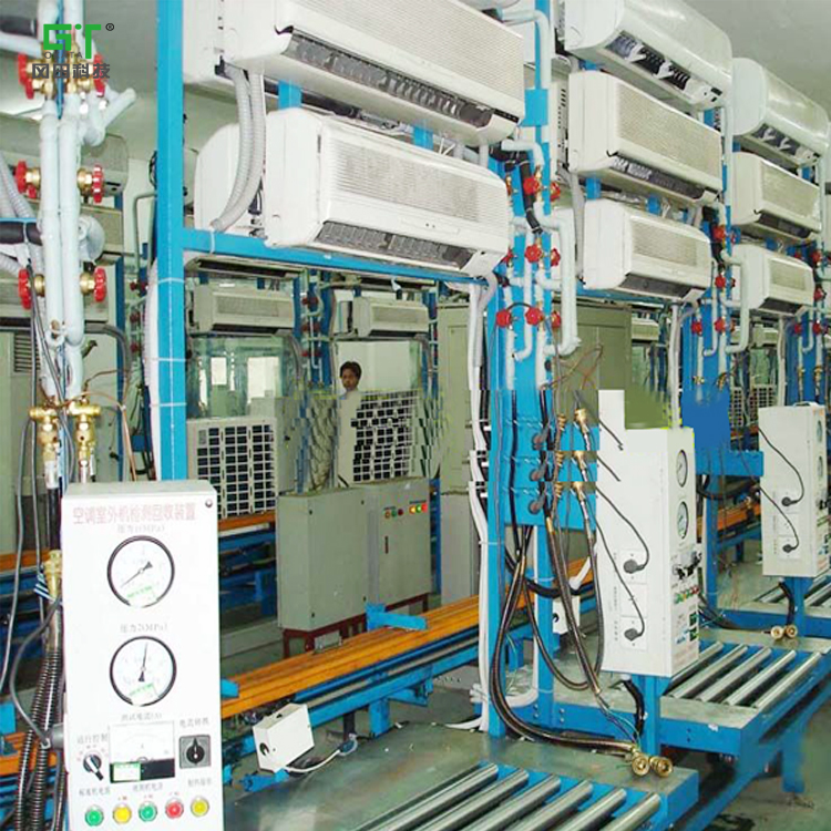 空調檢測線:用于各種空調器室內、外機各性能參數(shù)的檢驗,整個系統(tǒng)具有穩(wěn)定可靠,精度高,操