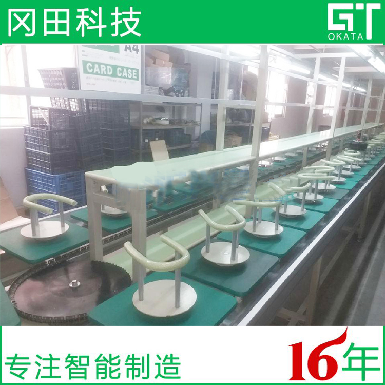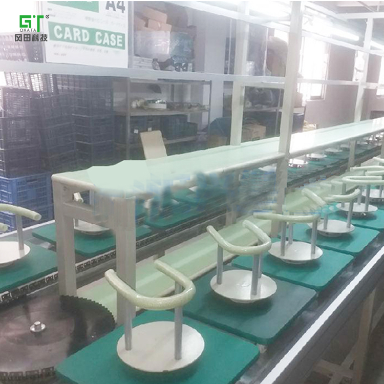 該類生產裝配線采用PVC防靜電尼龍片基帶作為傳送介質,以鋁合金型材為護邊,適用于汽車零部件